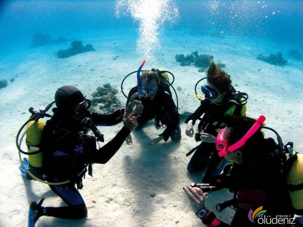 Sabah sizlerle buluşmamızın ardından, Fethiye Limanında bizleri bekleyen teknemize binerek su altı aktivitesi başlar. Yol boyunca profesyonel dalgıç hocalarının sizlere vereceği bilgiler doğrultusunda dalış deneyimi yaşayabilirsiniz. Küçük büyük her yaştan her kesimin yapabileceği özel bir yetenek gerektirmeyen aksine çok kolay su sporudur.